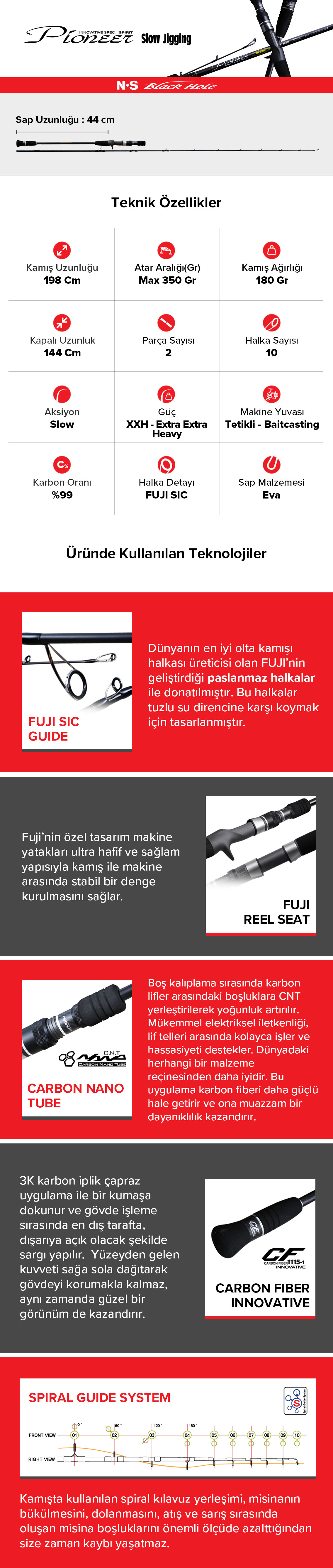 Uzman jigging avcılarının zorlu saha testlerinden geçerek onayladığı bu model, sayısız deneme ve yanılma sürecinin ardından ortaya çıkan en üst seviye slow jigging kamışıdır. Deneyimli avcıların tereddütsüz tercih edeceği bu final versiyon, yüksek elastikiyetli karbon tabaka ve Nano reçinelerin kusursuz biçimde harmanlanmasıyla üretilen özel bir power blank (Güçlü Gövde) yapısına sahiptir.